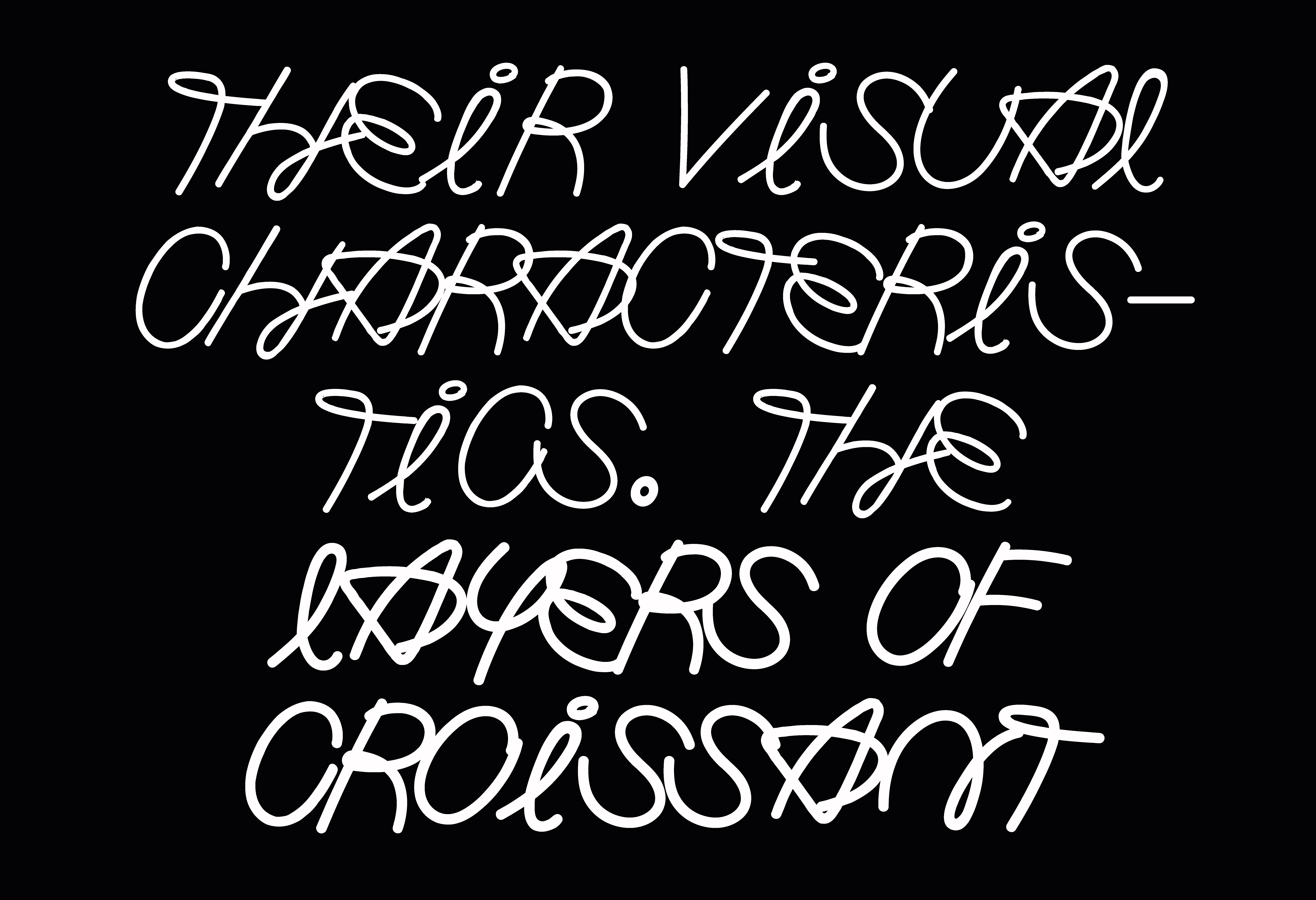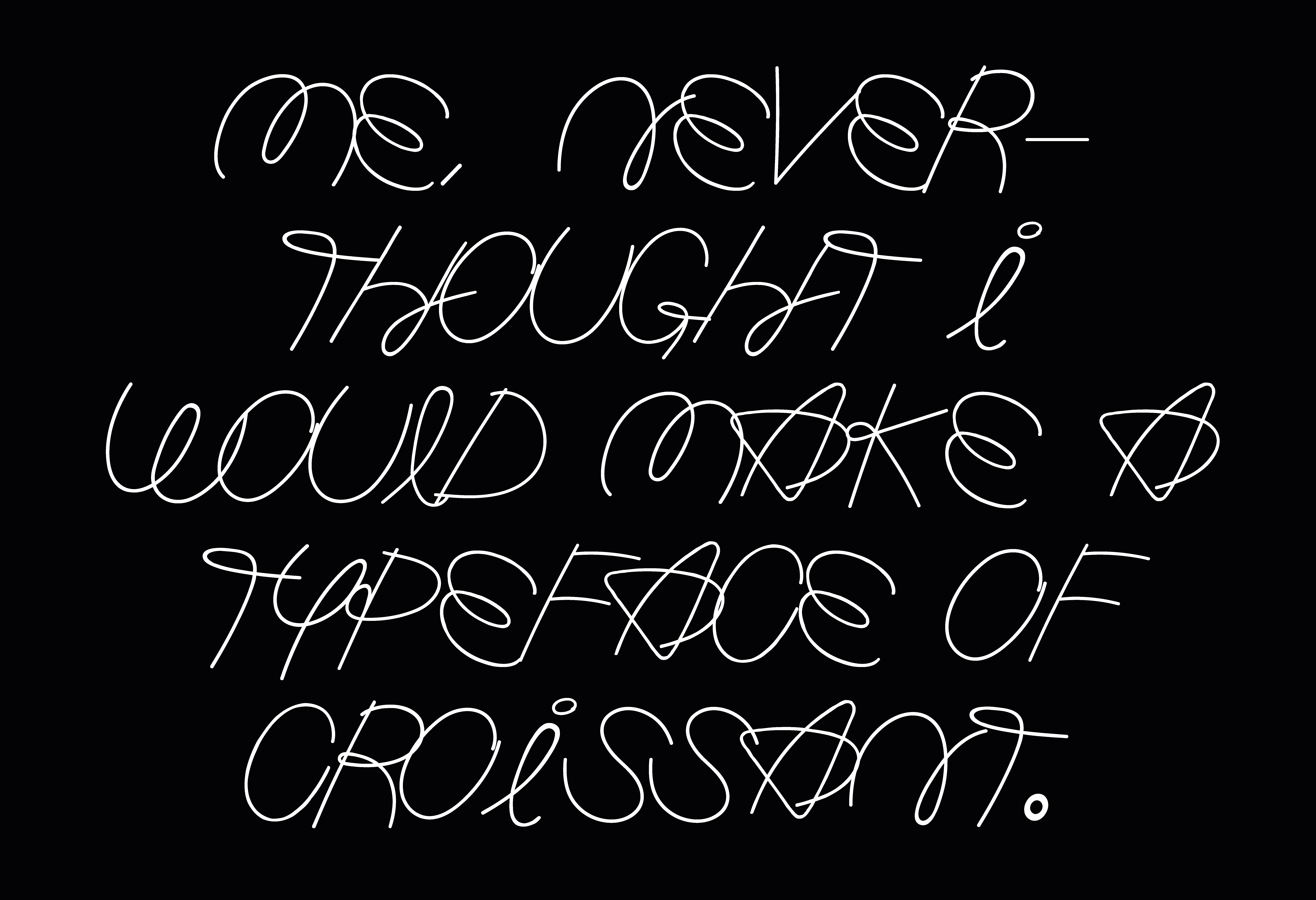 Me, never thought I would make a typeface of croissant. It is emotional. It speaks both to our minds and intellect because shapes materialize ideas and stimulate our emotions through their visual characteristics. The layers of croissant layers were baked together to form a typeface.